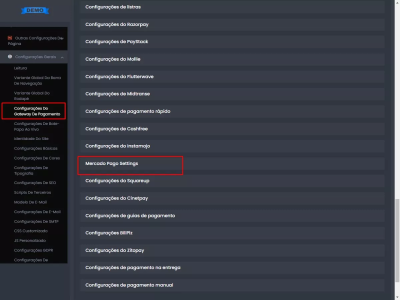Configurações de SEO disponíveis